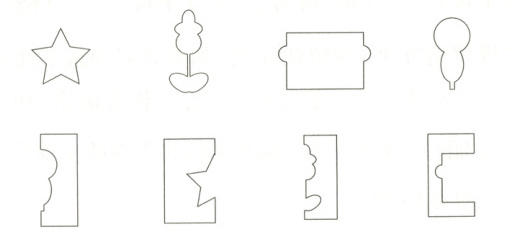四、下面的图形分别是从哪张纸上剪下来的?连一连。(8分)