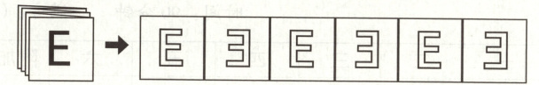 1. 新角度 拿一张长纸条,将它一反一正折叠起来,并画出字母E,用小刀把画出的字母E挖去,拉开就可以得到一条以字母E为图案的花边,如图。(12分)