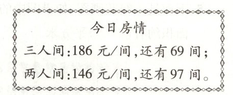 某旅游团有227位女游客需要入住宾馆。请你计算一下,为她们订购房间最少要花多少元?