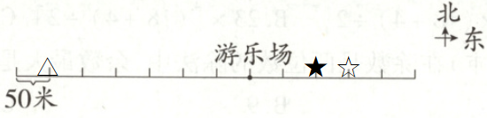 1. 游乐场东面150米的地方有一个超市,请你用☆标出超市的位置。