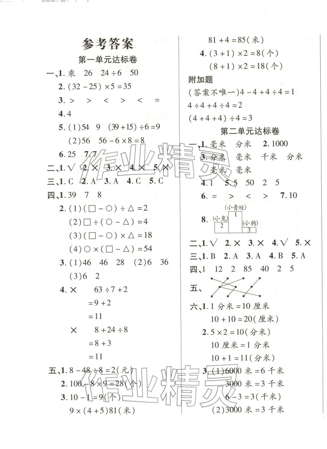 注:目前有些书本章节名称可能整理的还不是很完善,但都是按照顺序排列的,请同学们按照顺序仔细查找。练习册 2025年黄冈全优达标卷三年级数学上册北师大版 答案主要是用来给同学们做完题方便对答案用的,请勿直接抄袭。