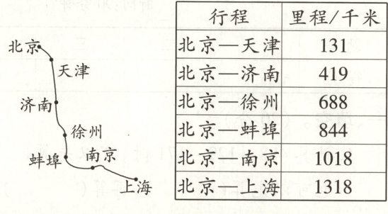 1. 下面是“北京—上海”沿线主要车站的火车里程表。(11分)