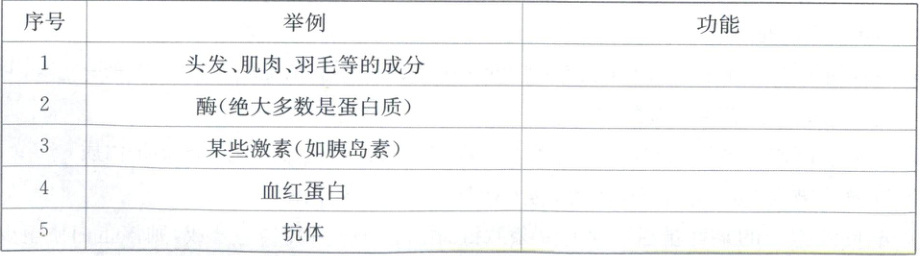 (1) 阅读教材第 24 页中表 1 - 3 - 1 的相关内容,完成下表中的蛋白质功能内容。