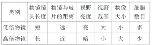 。③镜头长度与放大倍数的关系:目镜越长,倍数越