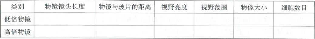 (2) 在使用显微镜的过程中,体会并回答下列问题。