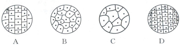 3. (2025常州期中)若用同一显微镜观察同一标本4次,每次仅调整目镜或物镜和细准焦螺旋,观察到的物像如图所示,其中视野最暗的是(