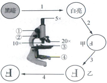 4.B 光学显微镜下无法观察到DNA分子,A错误;换成高倍镜后,只能调节细准焦螺旋使物像清晰,B正确;视野1到视野2,细胞变大,是换用高倍镜的结果,由于显微镜下成的是倒像,所以将视野1换成视野2之前,需先向左上角移动装片,C错误;将视野1换成视野2之后,放大倍数增大,视野会变暗,D错误。