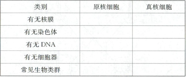 (1) 将原核细胞和真核细胞的区别填写在下面的表格中。