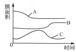 (6) 如图是该过程中内质网、高尔基体和细胞质膜膜面积的变化曲线,则 A、B、C 依次代表的结构分别是什么?
