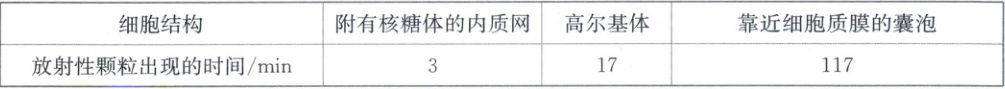 请阅读教材第 54 页中关于科学家研究分泌蛋白合成与分泌过程的内容,实验现象总结如下表所示。下图为分泌蛋白合成、运输和分泌过程示意图,分析并回答下列问题。