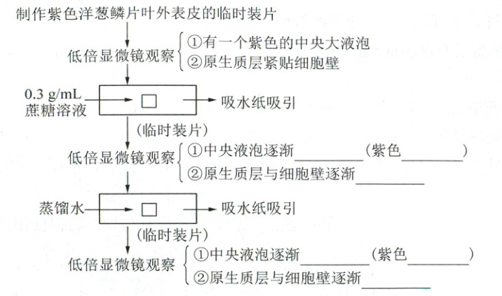 (1) 实验材料:紫色的洋葱鳞片叶外表皮细胞。