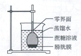 1. (2025 南通如皋中学期中模拟)某同学设计的渗透作用装置如图所示,实验开始时长颈漏斗内外的液面齐平,记作零界面。烧杯中加入质量浓度为 30%的蔗糖溶液,下列叙述正确的是 (