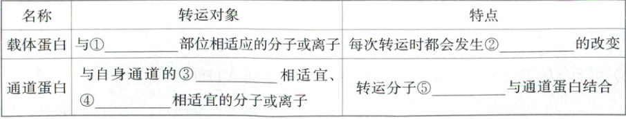 ①结合 ②自身构象 ③直径和形状 ④大小和电荷 ⑤不需要