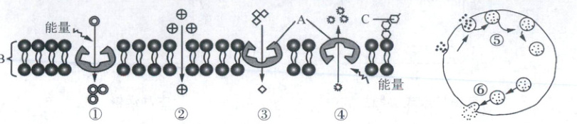 (1)①~⑥分别表示主动运输、自由扩散、协助扩散、主动运输、胞吞、胞吐。