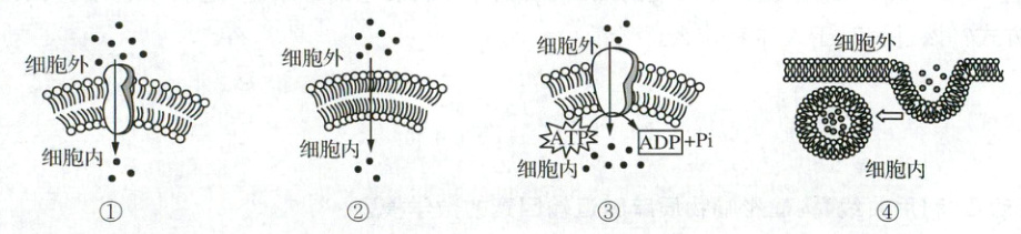 3. (2025 南通如皋中学期中模拟)如图①~④表示物质出入细胞的不同方式,下列叙述错误的是 (