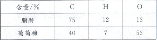 ;葡萄糖和脂肪在化学组成上的不同点是脂肪的$\mathrm{C}$、$\mathrm{H}$比例较糖类的高