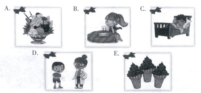 (B) 听音,根据你所听到的对话内容,给下列图片重新排序。对话读两遍。