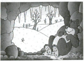 Roy grows very heavy. He gets very tired. So he finds a cave. It will be his den. It's where he will sleep. He lies down in the dark and closes his eyes. He goes to sleep for the winter … In the spring he will wake.