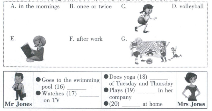( B) 听音, 根据你所听到的对话内容, 从所给的 A—G 中, 选择正确的选项完成下面的信息表格( 其中有两个多余选项)。对话读两遍。