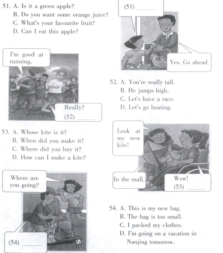 ( A) 从 A, B, C, D 四个选项中, 选出最恰当的一项, 补全对话。