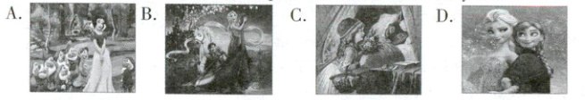 82. There’s a fairy tale about a beautiful princess and her friends. These friends are short but kind. Which picture matches this fairy tale?