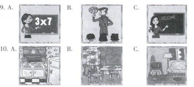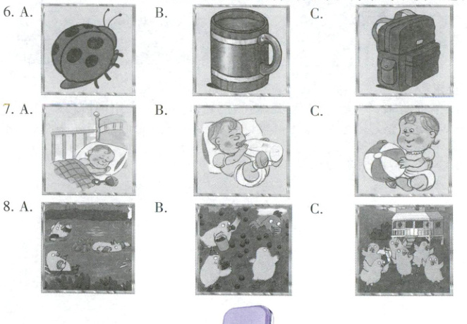 音, 选出与你所听到的句子意思相符的图片。每个句子读两遍。