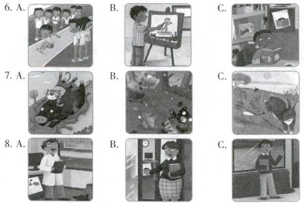 听音,选出与你所听到的句子意思相符的图片。每个句子读两遍。