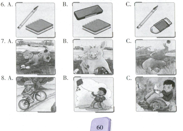 听音,选出与你所听到的句子意思相符的图片。每个句子读两遍。