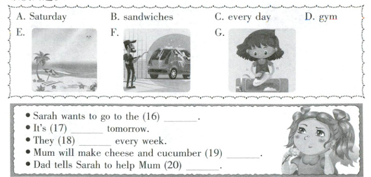 11. cold 12. breakfast 13. eyes 14. by car 15. carefully