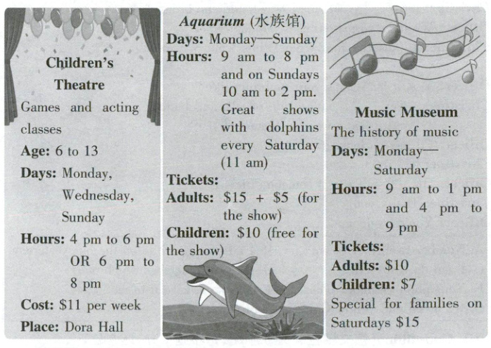 69. Bob and his parents go to the Aquarium to see the dolphin show. They should pay