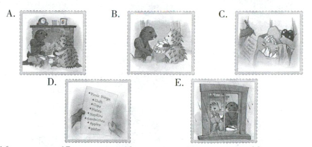 (B) 听音,根据你所听到的对话内容,给下列图片重新排序。对话读两遍。