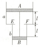 16. (16 分)如图所示,有一个竖直放置的汽缸,导热性能良好,两端开口且足够长,它由$a$、$b$两个粗细不同的圆筒连接而成,横截面积分别为$2S$、$S$,两活塞$A$、$B$的质量分别为$2m$、$m$。其中在两圆筒连接处有环形卡子$EF$,厚度不计,能保证活塞$B$不会运动到粗圆筒中。两活塞用长为$2l$不可伸长的轻绳相连,把一定质量理想气体密封在两活塞之间,活塞静止在图示位置,已知大气压强为$p_0$,且$p_0S = 2mg$。外界环境不变,忽略活塞与圆筒之间的摩擦。重力加速度为$g$。求: