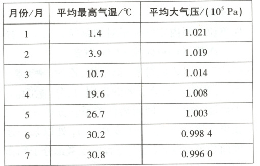 3.(2025 江苏无锡期中)下面的表格是某地区$1$~$7$月份气温与气压的对照表,$7$月份与$1$月份相比较,正确的是 (