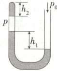 1.B 选右边液面为研究对象,右边液面受到向下的大气压强$p_0$,相同高度的左边液面受到上方高度为$h_1$的液柱向下的压强和液柱上方封闭气体向下的压强$p$,可知$p+\rho gh_1=p_0$,所以$p = p_0 - \rho gh_1$,B正确。