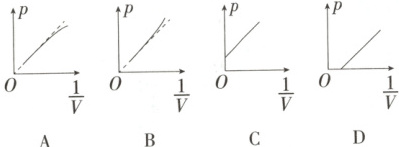 升高,则实验得到的$ p - \frac{1}{V} $图像应是 。