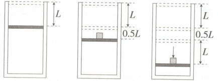 活塞第$2$次静止时有$p_2S(h - 1.5L) = p_0Sh$,$p_2S = p_0S + 2mg$