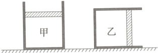 7.(2025 云南昆明统考) 如图所示, 质量相等的同种理想气体甲和乙分别用绝热活塞封闭在两个绝热汽缸中, 两汽缸固定在同一水平面上, 开口分别竖直向上和水平向右, 活塞质量不能忽略且可沿汽缸无摩擦滑动。甲、乙两气体的体积相等, 它们的压强分别用 $p_{\text {甲 }} 、 p_{\text {乙 }}$ 表示, 温度分别用 $T_{\text {甲 }} 、 T_{\text {乙 }}$ 表示。下列关系正确的是 (