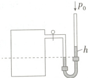 8.(2025 河北石家庄期中) 如图所示, 圆柱形导热容器内充有一定质量的空气, 容器与水银压强计相连, 压强计左右两管下部由软胶管相连。如果容器处于环境温度 $t_0=27{ }^{\circ} \mathrm{C}$ 的空气中时, 两管中水银面等高。现将此导热容器浸入摄氏温度为 $t_1$ 的热水中, 左管中水银将下降; 然后缓慢地向上提右管, 使左管中水银面回到原来高度, 此时右管与左管中水银面的高度差 $h=15.2 \mathrm{~cm}$。已知水银的密度 $\rho=13.6 × 10^3 \mathrm{~kg} / \mathrm{m}^3$, 取重力加速度 $g=10 \mathrm{~m} / \mathrm{s}^2$, 大气压强 $p_0=1.0 × 10^5 \mathrm{~Pa}, T=t+273 \mathrm{~K}$, 那么, 该热水的温度约为 (
