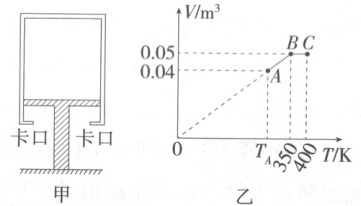 (1)由题图乙分析可知从状态A变化到状态B,气体发生等压变化,有$\frac{V_A}{T_A}=\frac{V_B}{T_B}$