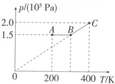 (1)从状态B到状态C为等容变化,根据查理定律有$\frac{p_B}{T_B}=\frac{p_C}{T_C}$