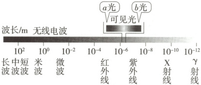8.不同波长的电磁波具有不同的特性,在生产生活中有不同的应用。$a$、$b$两单色光在电磁波谱中的位置如图所示。下列说法正确的是(
