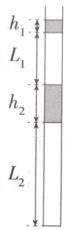 则稳定后玻璃管至少需要的长度$L = L_{1}'' + L_{2}' + h_{1} + h_{2}$