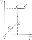 3.C 由$V-T$图像可知,理想气体$ab$过程做等压变化(点拨:$ab$过程对应图线的反向延长线过坐标原点),$bc$过程做等温变化,$cd$过程做等容变化,$bc$过程理想气体的体积增大,根据理想气体状态方程$\frac{pV}{T}=C$可知,气体压强减小,故选C。