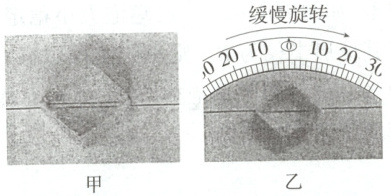 3.(2025 江苏泰州期末)如图甲所示,透过方解石观察下方的线条可以看到两个像,这称为双折射现象,再透过缓慢旋转的偏振片会观察到两个像交替出现,如图乙所示,则下列说法错误的是 (