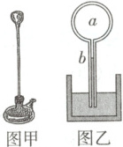3 多选题(2025云南,9)图甲为1593年伽利略发明的人类历史上第一支温度计,其原理如图乙所示。硬质玻璃泡$a$内封有一定质量的气体(视为理想气体),与$a$相连的$b$管插在水槽中固定,$b$管中液面高度会随环境温度变化而变化。设$b$管的体积与$a$泡的体积相比可忽略不计,在标准大气压$p_0$下,$b$管上的刻度可以直接读出环境温度。则在$p_0$下 (