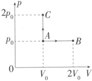 8.A气体从状态A到状态B过程,气体体积增大,气体对外做功,则有$W_1 = -p_0 \Delta V = -p_0V_0$,内能增加量为$\Delta U_1 = U_B - U_A = \frac{5}{2}p_BV_B - \frac{5}{2}p_AV_A = \frac{5}{2}p_0V_0$,根据热力学第一定律$\Delta U = W + Q$可知,气体吸收的热量为$Q_1 = \Delta U_1 - W_1 = \frac{7}{2}p_0V_0$;气体从状态A到状态C过程,气体体积不变,气体对外做功为零,即$W_2 = 0$,内能增加量为$\Delta U_2 = U_C - U_A = \frac{5}{2}p_CV_C - \frac{5}{2}p_AV_A = \frac{5}{2}p_0V_0$,根据热力学第一定律$\Delta U = W + Q$可知,吸收的热量为$Q_2 = \Delta U_2 - W_2 = \frac{5}{2}p_0V_0$,所以$\frac{Q_1}{Q_2} = \frac{7}{5}$,故选A。