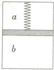 2.(2025 江苏扬州期末)如图,一直立的绝热汽缸中的理想气体被轻弹簧连接的绝热活塞分成$a$、$b$两部分,活塞与缸壁间密封良好且没有摩擦。初始时活塞静止,缓慢将汽缸旋转$90°$,使其平放后 (