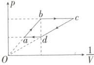 3.(2025湖北荆州期末)一定质量的理想气体从状态$a$经过状态$b$、$c$、$d$回到状态$a$,其压强$p$与体积的倒数$\frac{1}{V} $的关系如图所示。下列说法正确的是 (