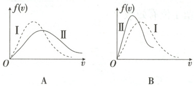 3.A 温度升高时,速率较大的分子所占的比例增大,速率分布曲线的峰值向速率大的一侧移动,且两图线与横轴所围面积相等,故选 A。