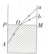 为水面,从 $A$ 点发出一束复色光,射到水面上的 $O$ 点后,折射光发生了色散,分成了 $a$、$b$ 两种单色光,则 (